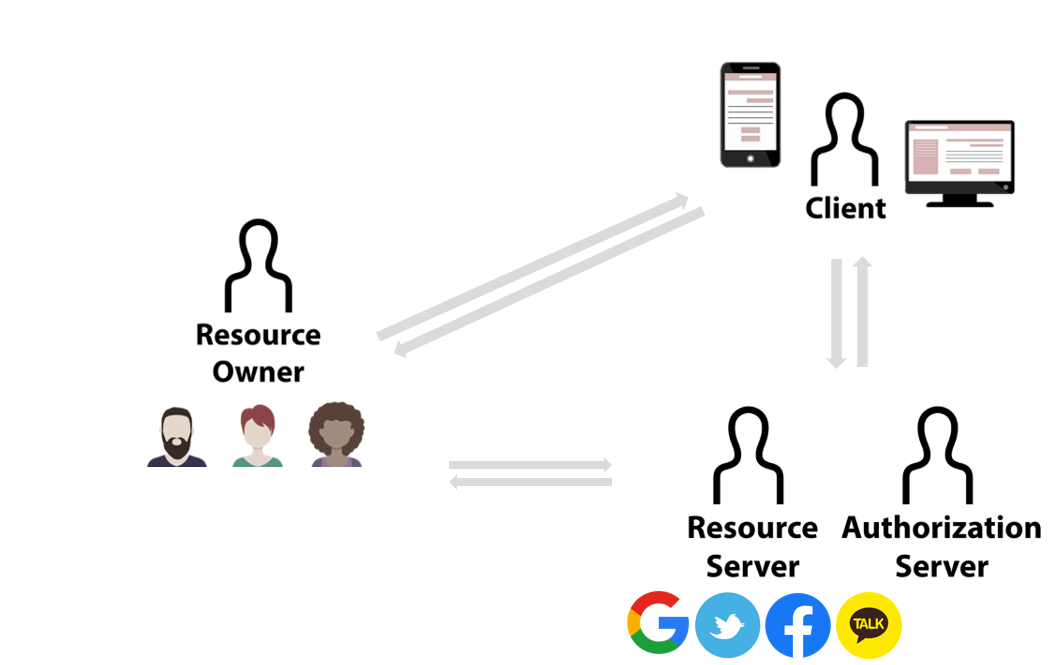 + Authorization Server : 인증과 관련된 처리를 전담하는 서버 - Resource Owner : 자원의 소유자 (User)