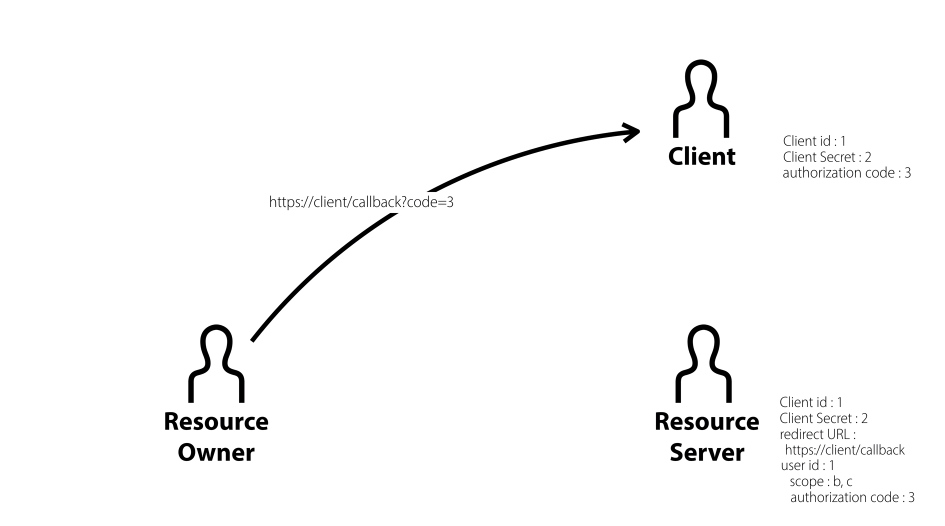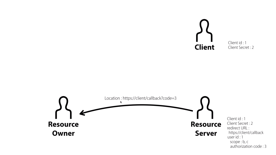 즉, Resource Server가 회원의 웹브라우저에게 https://client/callback?code=3이라는 주소로 이동하라고 명령한 것이다.