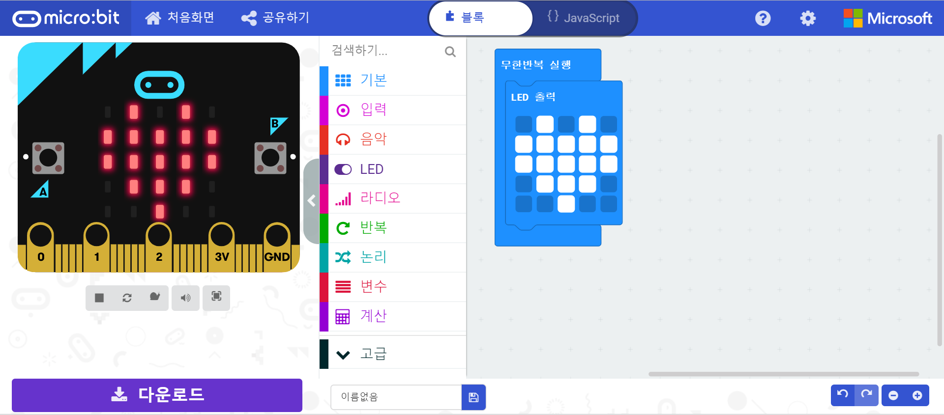 마이크로비트 사용법을 익혔다면 이제 간단한 예제를 풀어본다.
