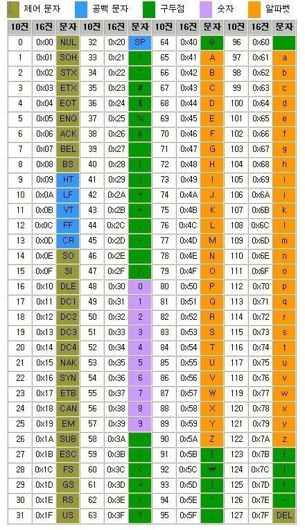 재밌는 사실은 숫자도 ASCII Code 테이블에 존재한다는 것이다.