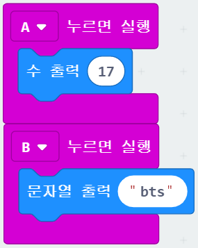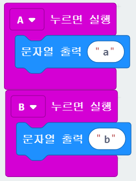 A버튼을 누르면 문자열 'a'가 출력되도록 하고, 마찬가지로 B버튼을 누르면 문자열 'b'가 출력되도록 했다.