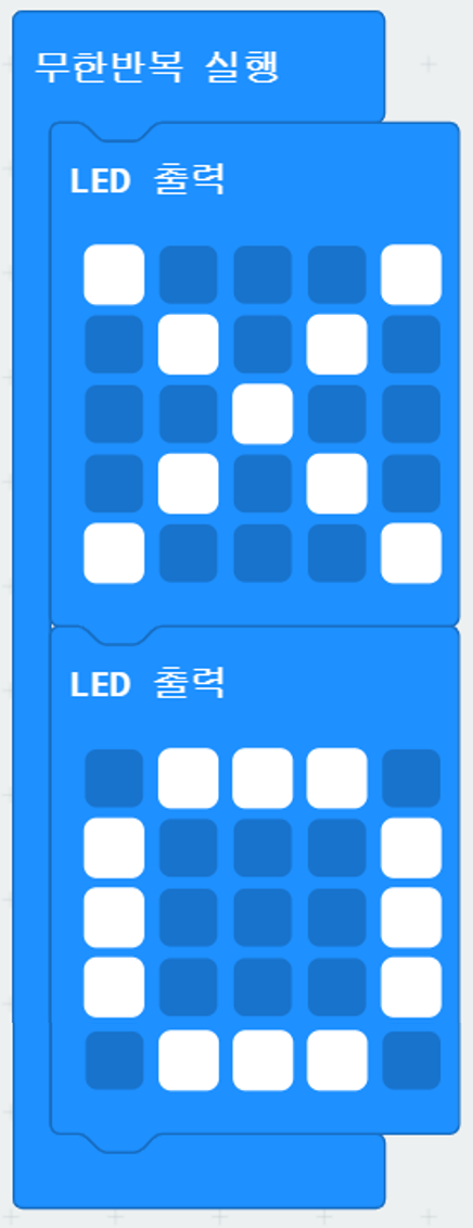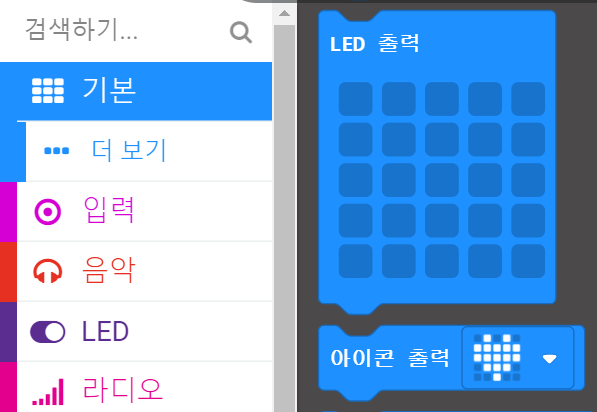 직접 모양을 만들 수 있는 LED 출력 혹은 원하는 모양을 고를 수 있는 아이콘 출력을 기본 탭에서 찾아 이용한다.