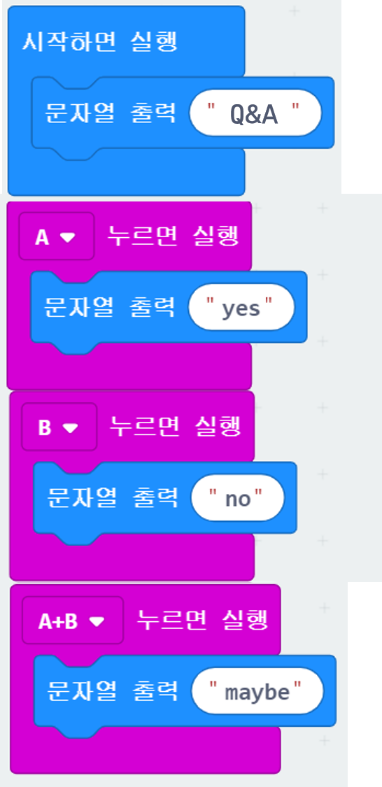 A와 B버튼 동시에 누르면 ‘maybe’ 출력해본다.