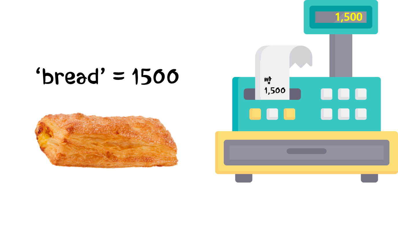 따라서 가격을 외우고 있지 않아도 계산대에 가면 가격이 나오고 계산도 된다.