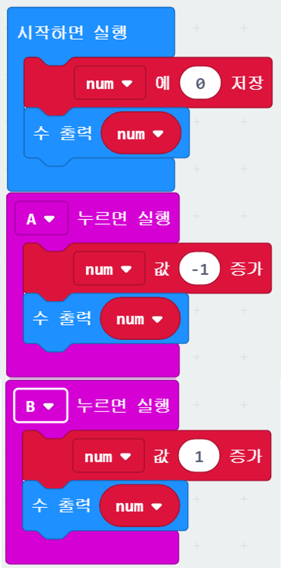 A 버튼을 누르면 num에 -1 증가, num 출력,