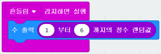 흔들림 감지하면 1~6의 정수 랜덤값을 출력해본다.