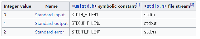 각 Unix 프로세스는 세 가지 standard streams에 해당하는 고정된 standard POSIX file descriptors를 가진다.