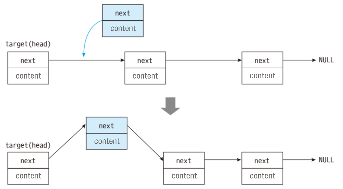 new->next = *lst; 의 작업을 통해 new라는 리스트 뒤에 *lst에 저장되어있던 NODE1이 연결되었다.