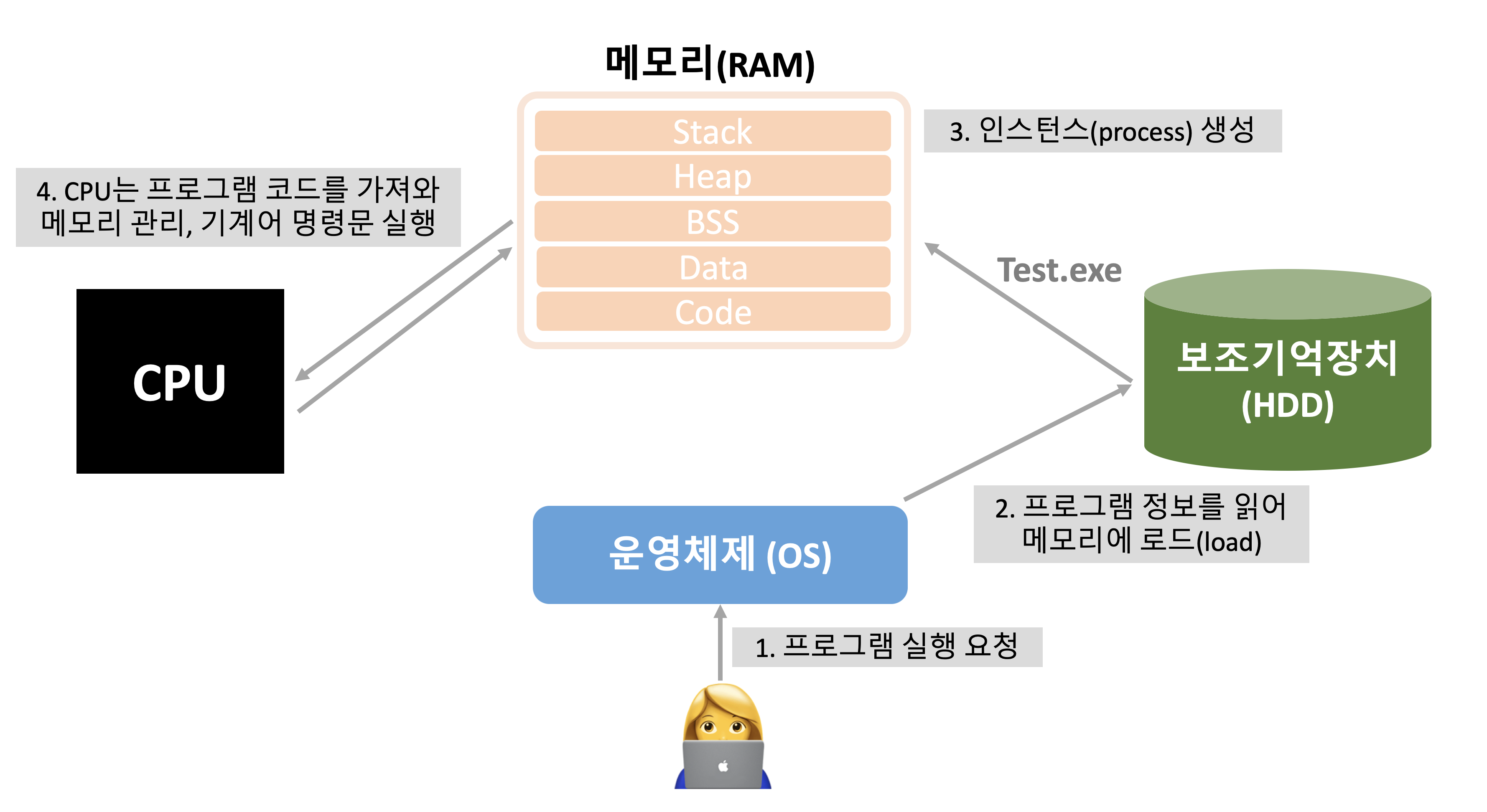 프로그램이 실행되는 과정을 도식화하면 다음과 같다.