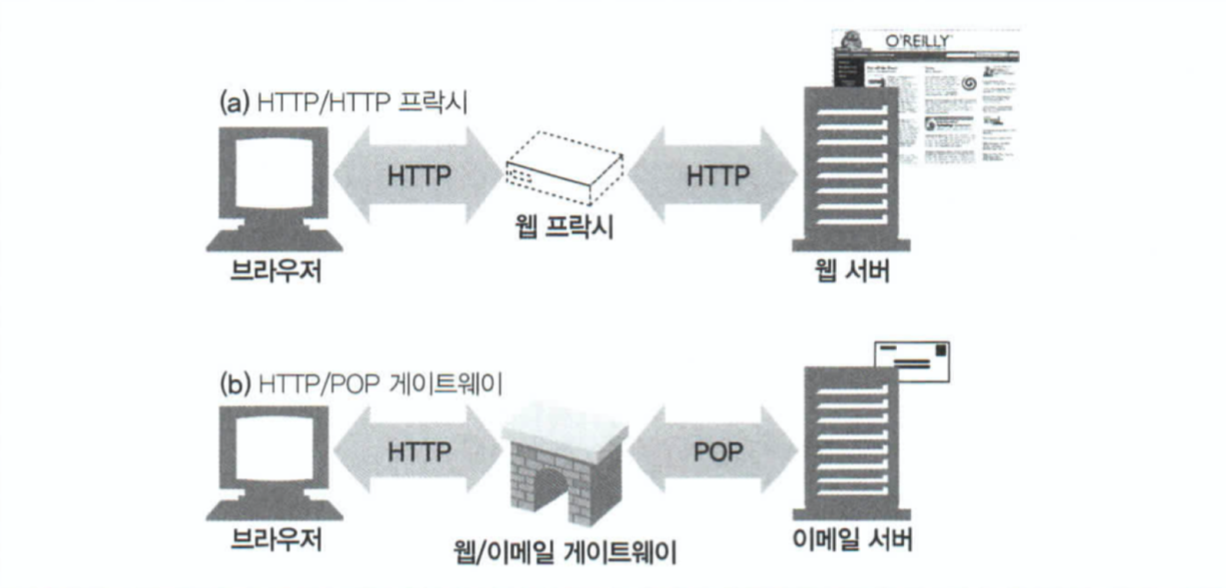 웹 proxy 서버는 클라이언트와 서버 사이에서 트랜잭션을 수행하는 중개인이며, 같은 프로토콜을 사용하는 둘 이상의 애플리케이션을 연결한다.