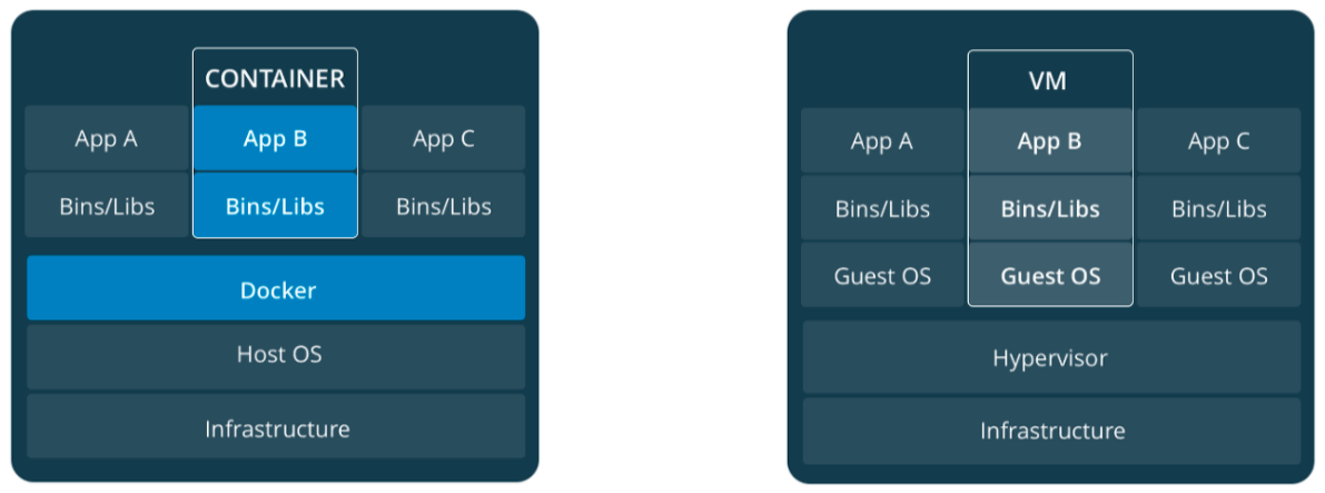 - VMware나 VirtualBox같은 VM(Virtual Machine)은 Host OS 위에 Guest OS 전체를 가상화하여 사용하는 방식이다.