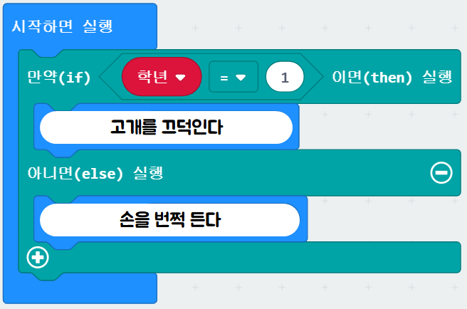 1학년이 아니면(2학년이나 3학년이라면) 손을 번쩍 든다.