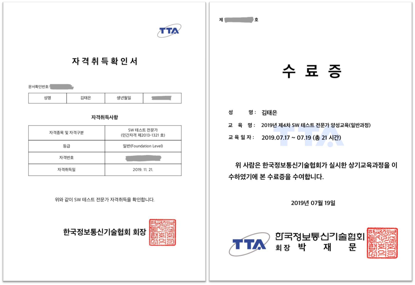 정식 자격증은 등기우편으로 발송된다고 한다. 수강료, 시험비 같은 금전적인 부분은 멘토링 기관인 TTA에서 지원을 받았기 때문에 그만큼 열심히 공부해서 합격의 결과를 내고 싶었다. 의미 있는 활동과 흥미로운 공부를 할 수 있어서 감사하다.