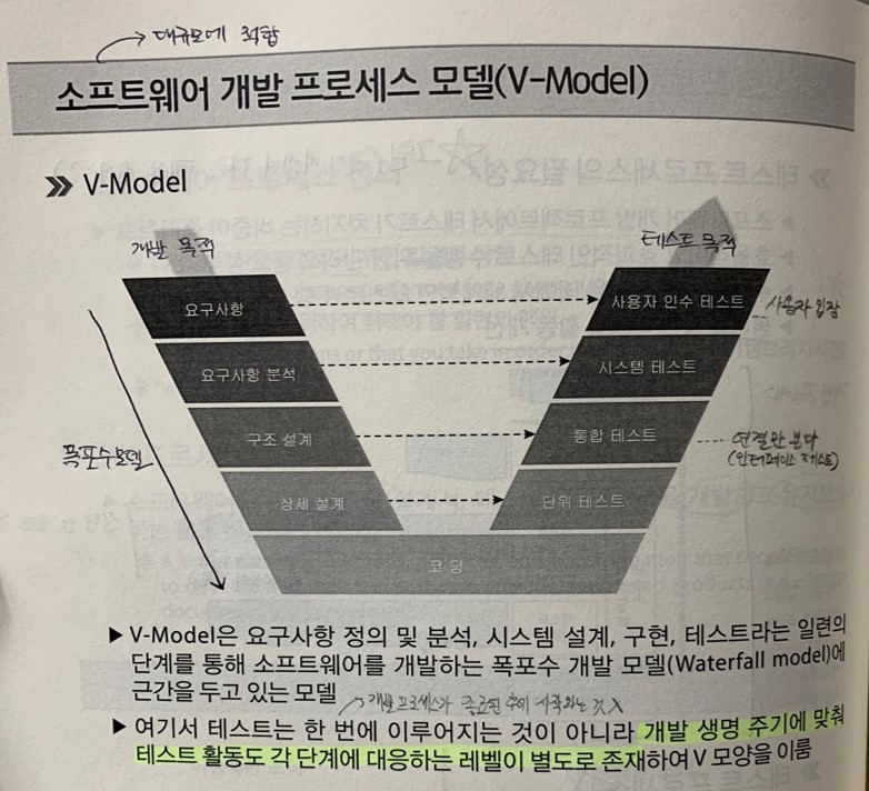 V모델은 모든 개발이 완료된 후 한꺼번에 테스트를 하는 것이 아니라 개발 단계별로 테스트를 실행하는 모델로서, 중요성이 부각되고 있다.