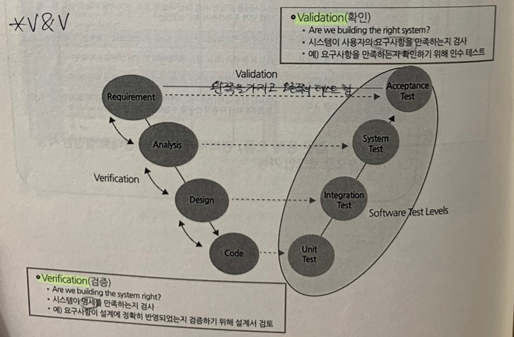 개발 단계를 나누어본다면 오류를 고치는데 가장 비용이 많이 발생하는 단계가 어느 단계일까? 바로 유지보수 단계다. 개발이 진행되면 될수록 오류를 해결하는데 필요한 비용이 급격하게 증가한다. 따라서 단계별 테스트로 확인(Validation)하고, 명세가 반영됐는지 검증(Verification)한다.