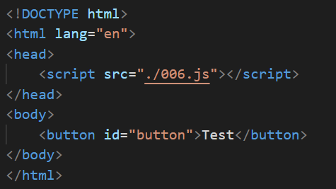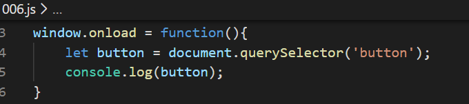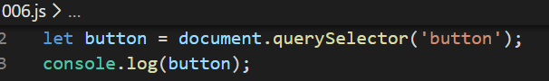 js 파일에서는 html 문서에 있는 button 태그를 가져와 button 변수에 담고 콘솔에 찍어주게끔 했다.