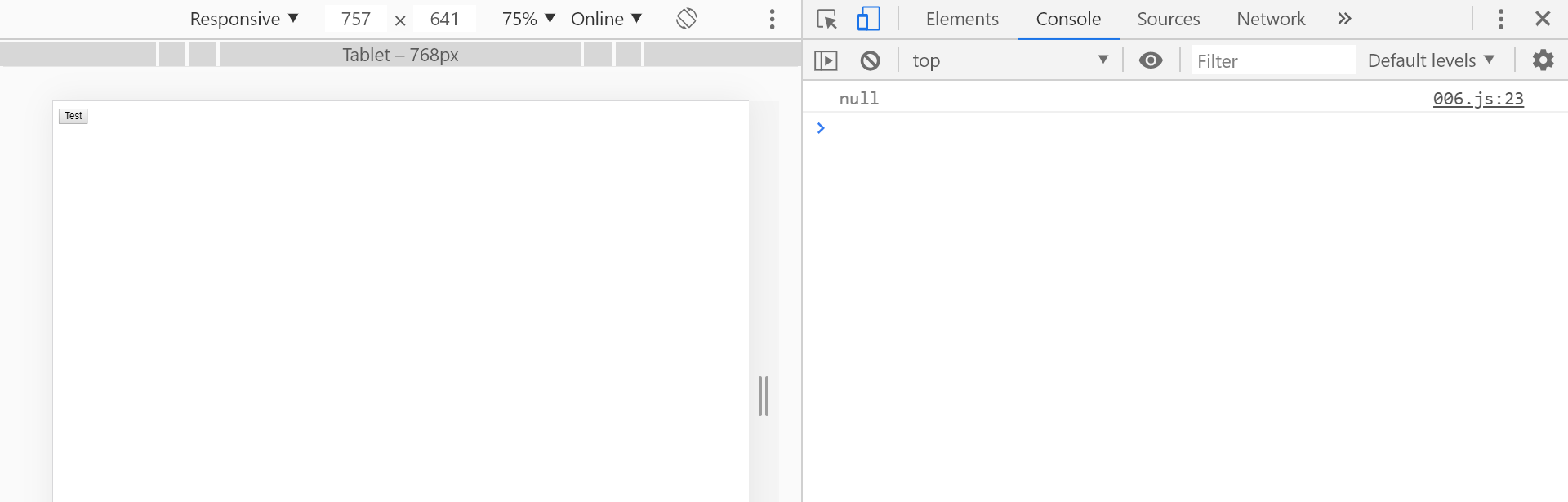 그러나 콘솔에는 'null'이 뜨고 아무것도 없다고 나온다.