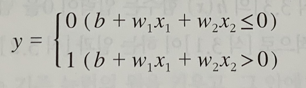 이를 위해 조건 분기의 동작(0을 넘으면 1을 출력하고 그렇지 않으면 0을 출력)을 하나의 함수로 나타낸다.