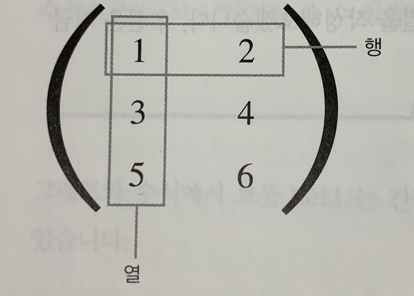 2차원 배열은 특히 행렬(matrix)라고 부른다. 아래와 같이 가로 방향을 행(row), 세로 방향을 열(column)이라고 한다.