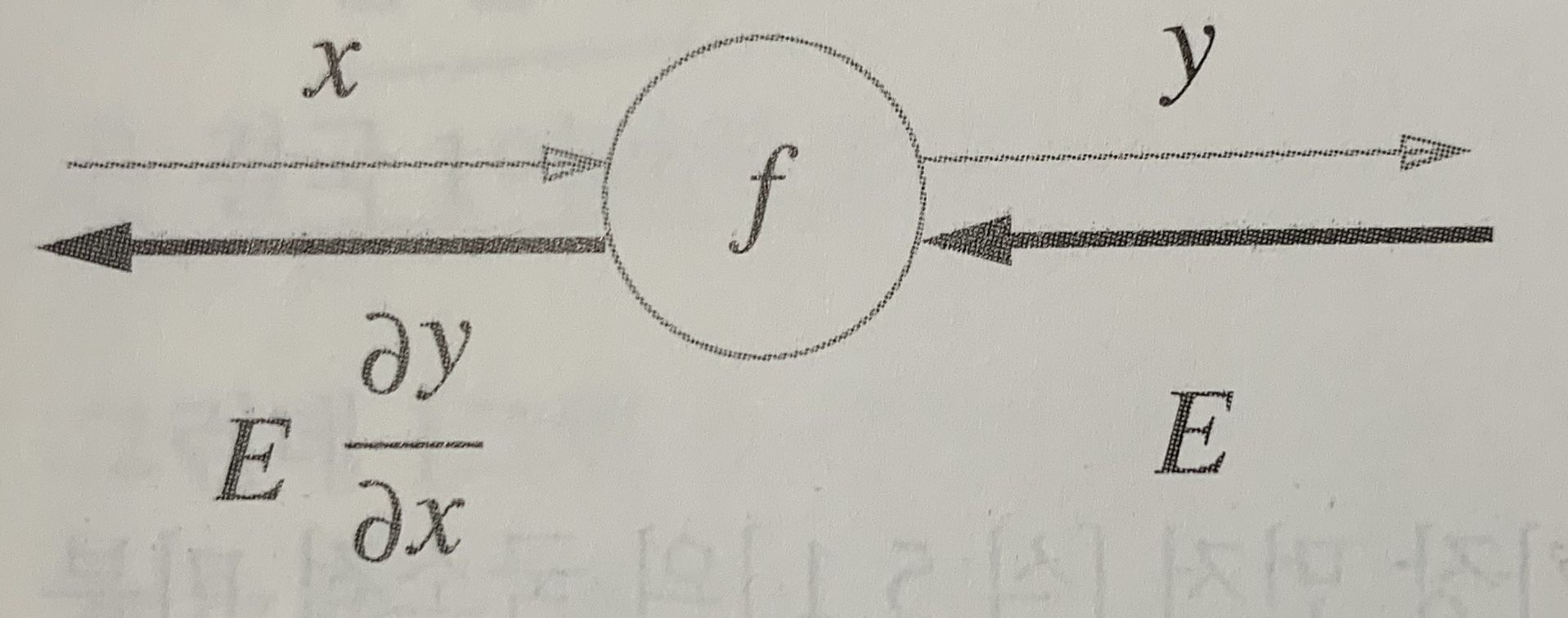 y = f(x) 라는 계산의 역전파를 그리면 아래와 같다.