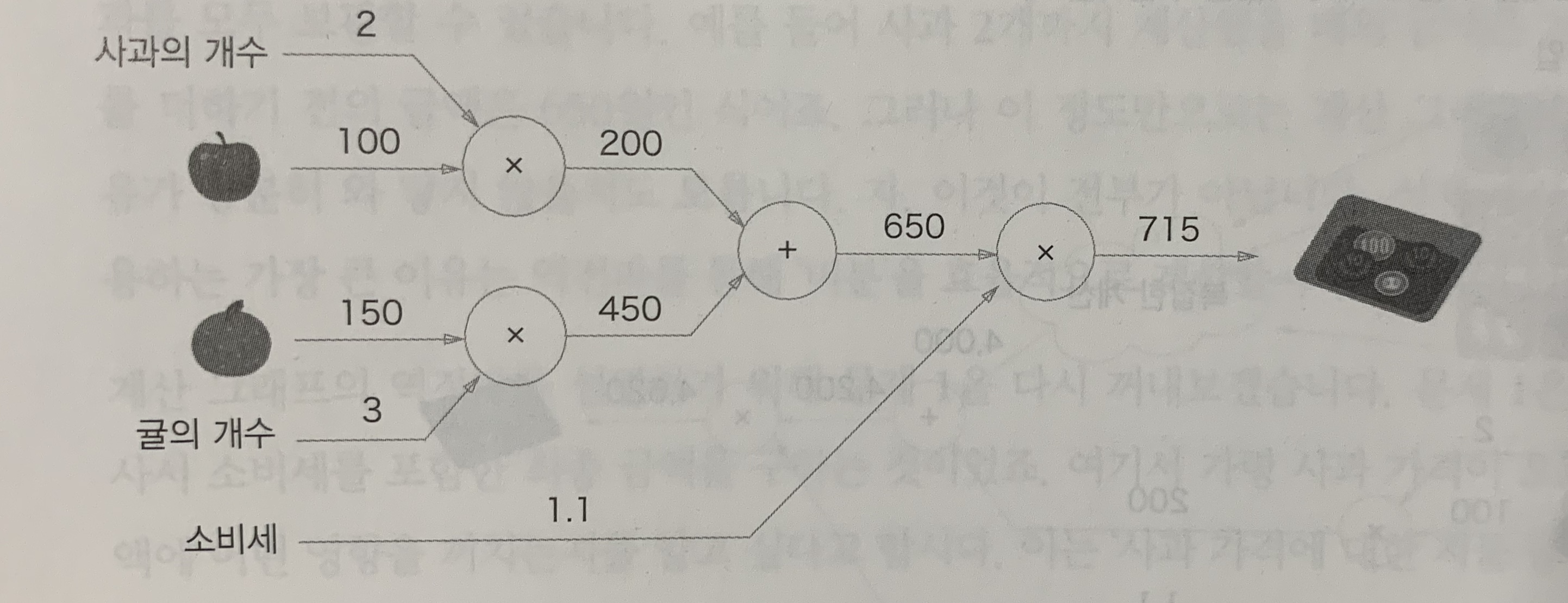 단, 이 예에서 소비세와 사과 가격은 단위가 다르니 주의한다(소비세 1은 100%, 사과 가격 1은 1원).