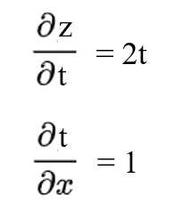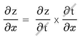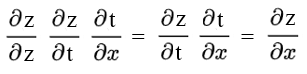 'x에 대한 z의 미분'은 't에 대한 z의 미분'과 'x에 대한 t의 미분'의 곱으로 나타낼 수 있다.