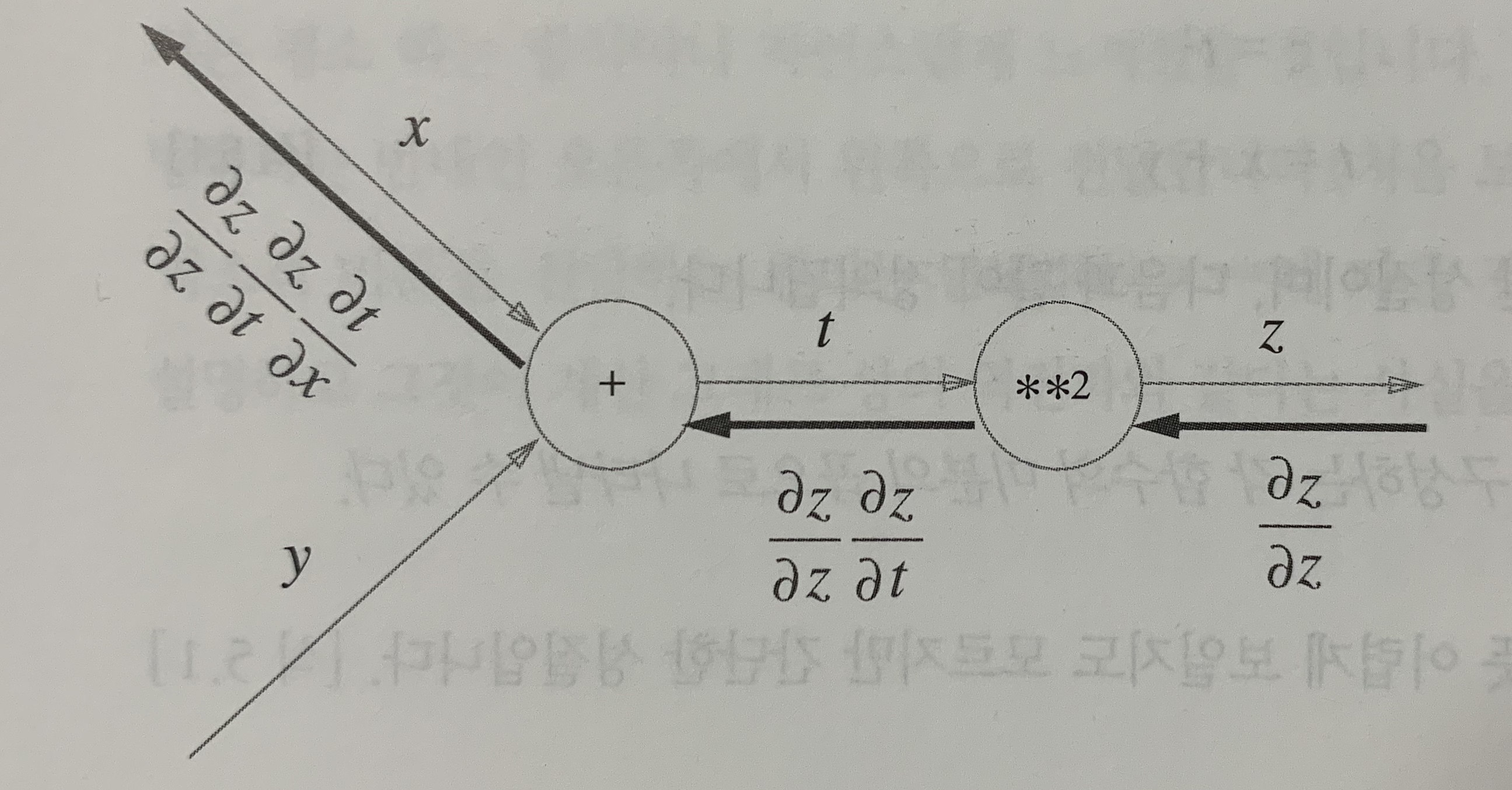 덧셈 노드의 역전파에서는 z = x+y 라는 식을 대상으로 그 역전파를 살펴보겠다.