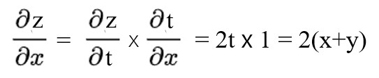 'x에 대한 z의 미분'은 't에 대한 z의 미분'과 'x에 대한 t의 미분'의 곱으로 나타낼 수 있다.