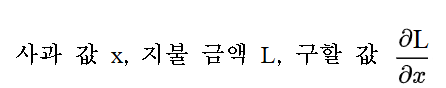 문제 1에서 사과 가격이 오르면 최종 금액에 어떤 영향을 끼치는지 알고 싶다면 '사과 가격에 대한 지불 금액의 미분'을 구하는 문제에 해당한다.