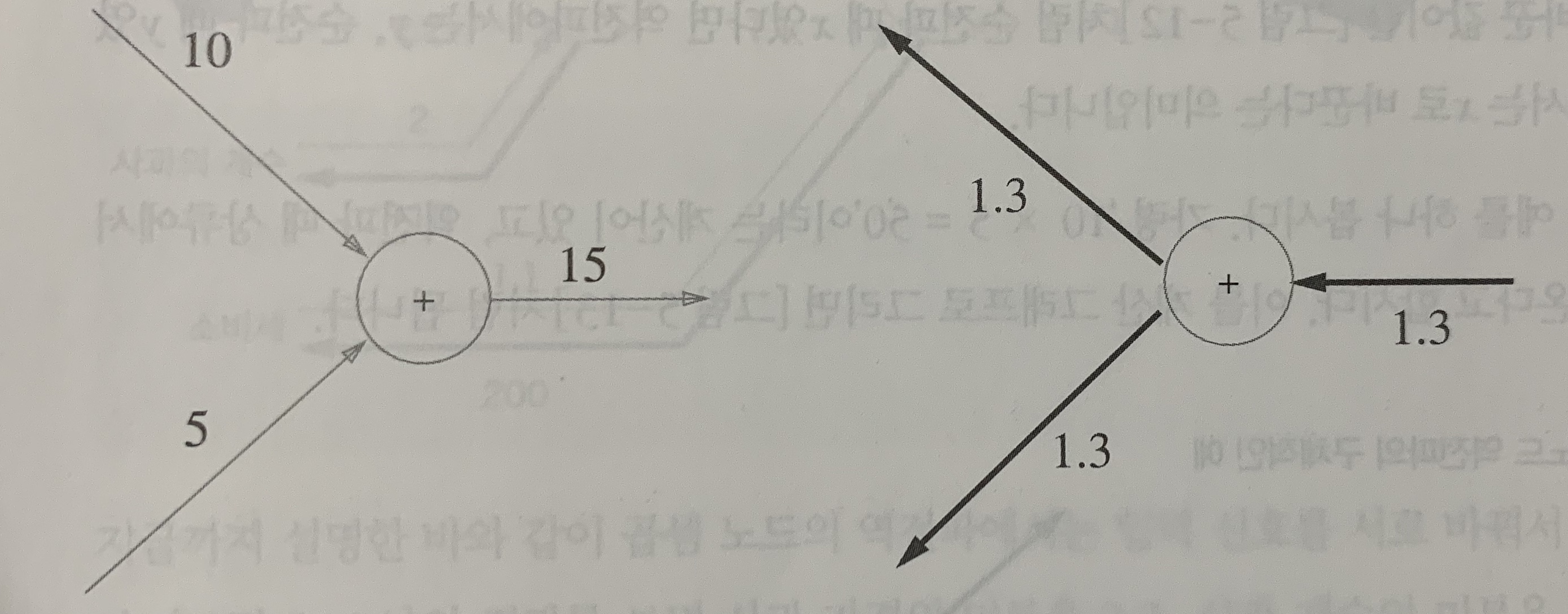 덧셈 노드 역전파는 입력 신호를 다음 노드로 출력할 뿐이므로 1.3을 그대로 다음 노드로 전달한다.