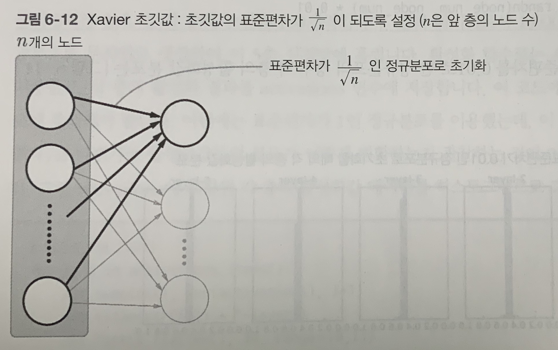Xavier 초깃값을 사용하면 앞 층에 노드가 많을수록 대상 노드의 초깃값으로 설정하는 가중치가 좁게 퍼진다.
