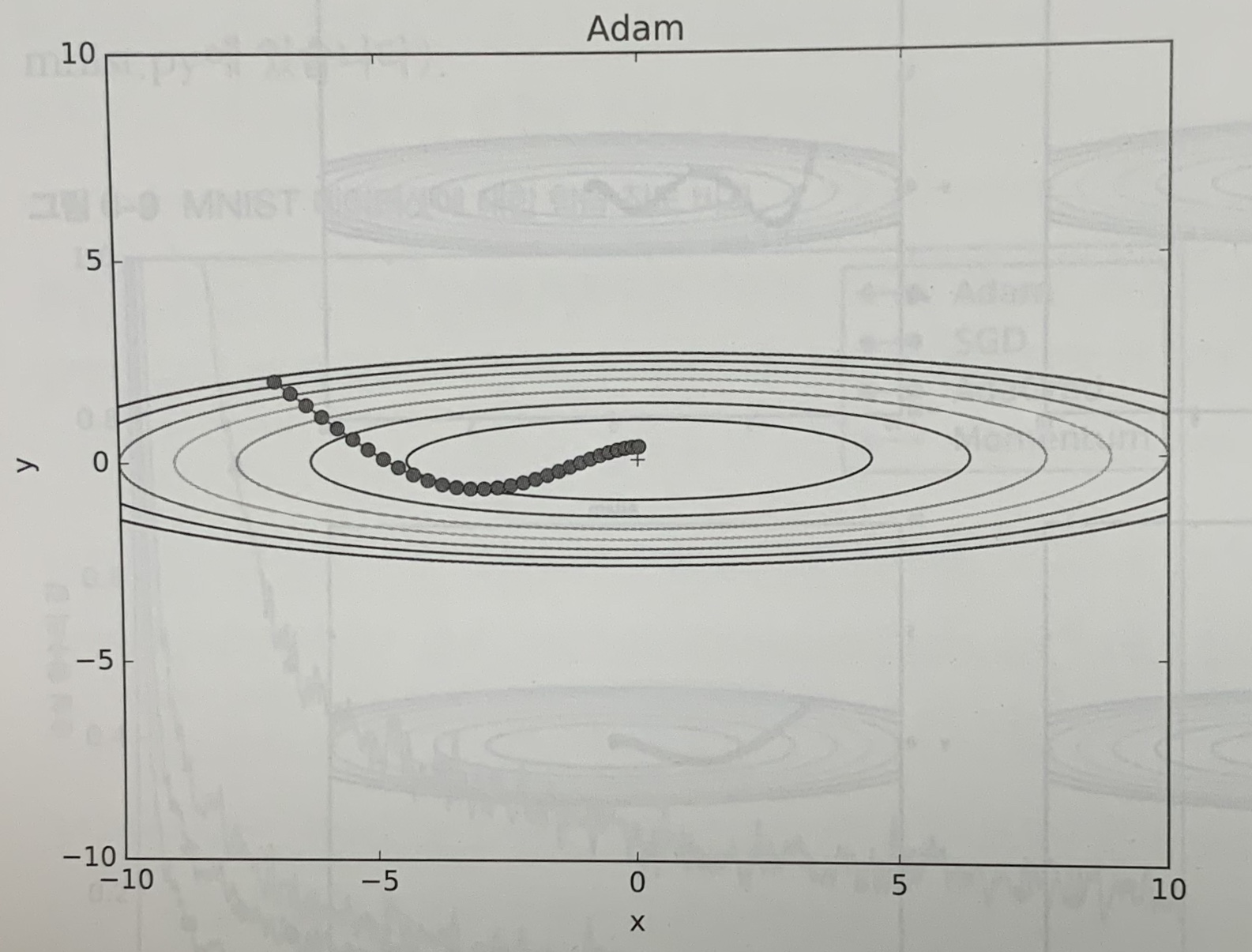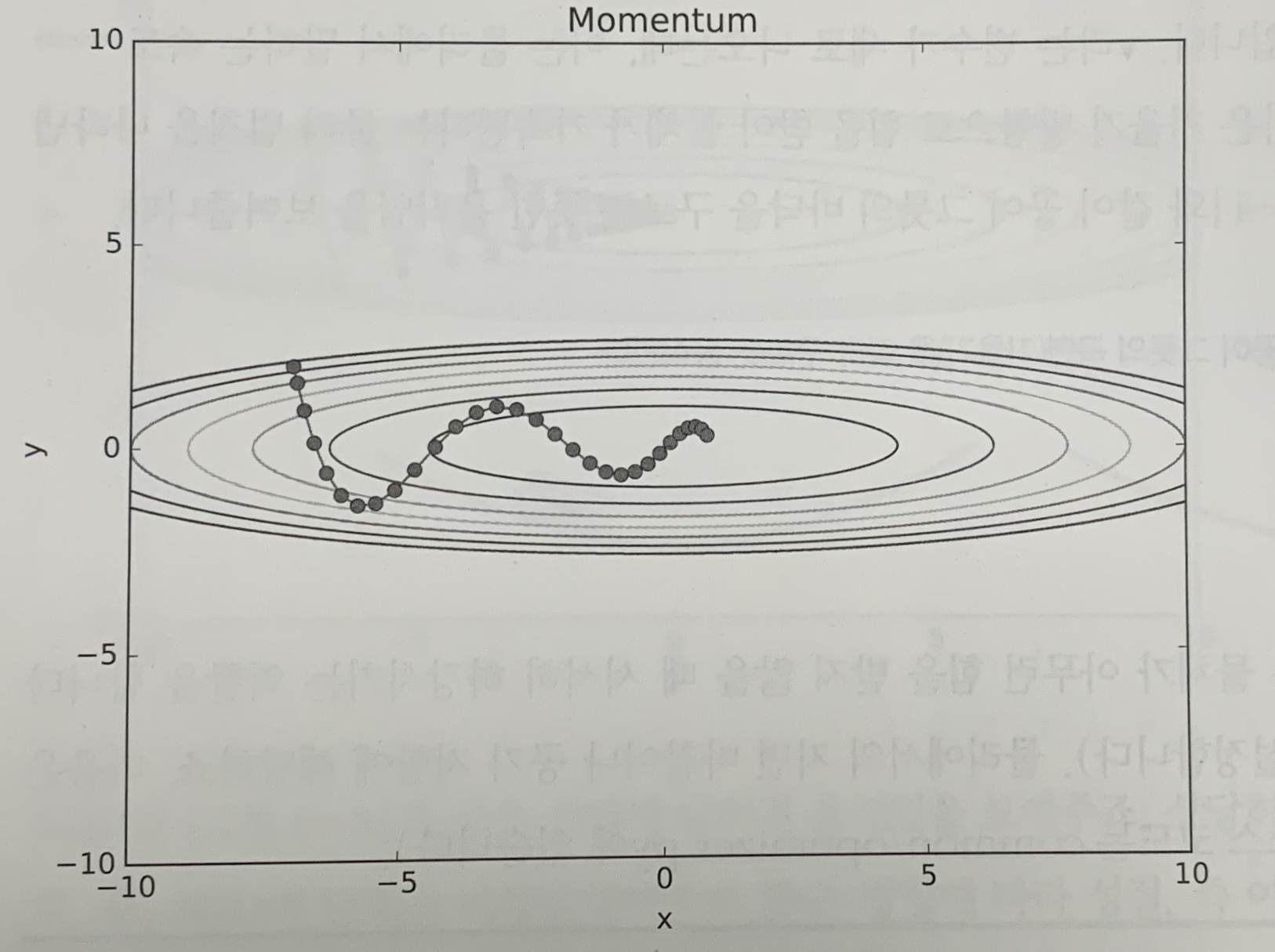 이제 모멘텀을 사용해서 [식 6.2]의 최적화 문제를 풀어본다. 결과는 아래처럼 된다.