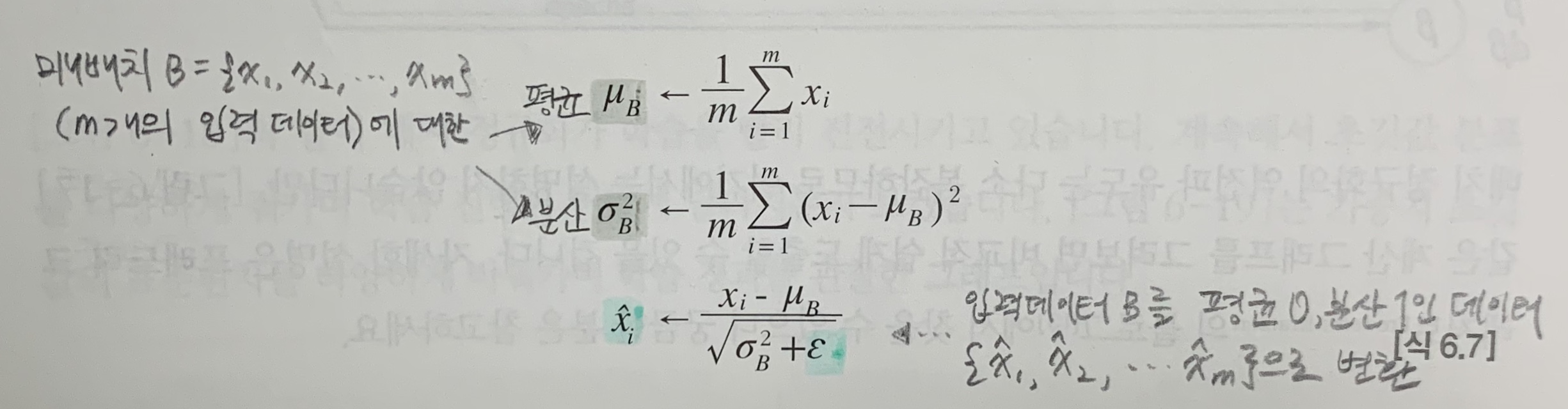 입력데이터인 미니배치 B에 대해 평균과 분산을 구한다.