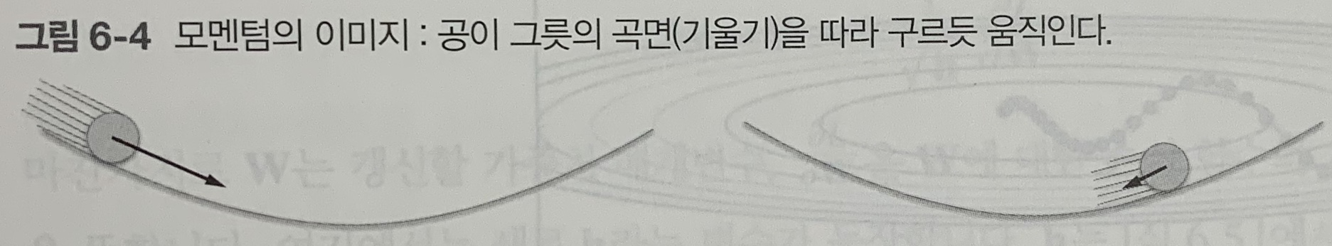 모멘텀은 아래 그림처럼 공이 그릇의 바닥을 구르는 듯한 움직임을 보여준다.