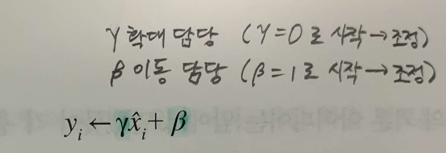 또, 배치 정규화 계층마다 이 정규화된 데이터에 고유한 확대(scale)와 이동(shift) 변환을 수행한다.