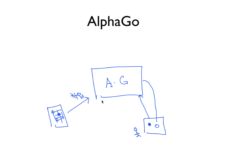 이세돌 선수가 바둑을 두면 그 데이터를 입력 받아서 어디에 바둑을 두면 좋을지 답을 놓는다.