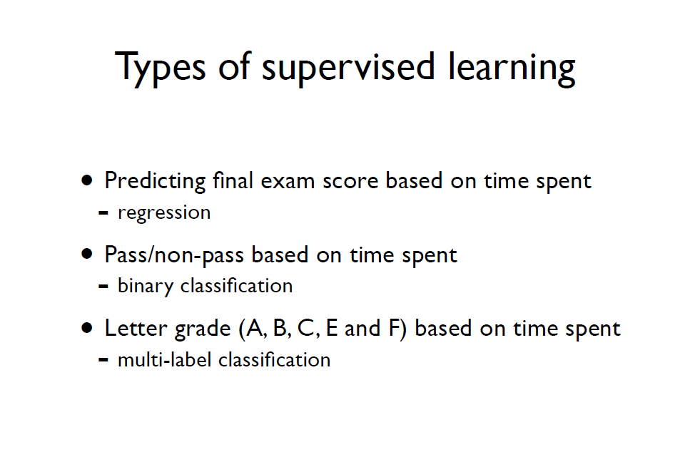 Supervised learning도 결과에 따라 세 가지로 나눠볼 수 있다.
