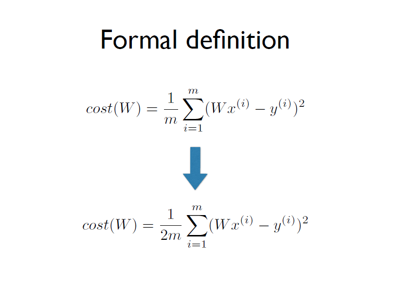 아래는 cost 함수 알고리즘을 일반화한 것으로, 1/m을 1/2m으로 수정한다.