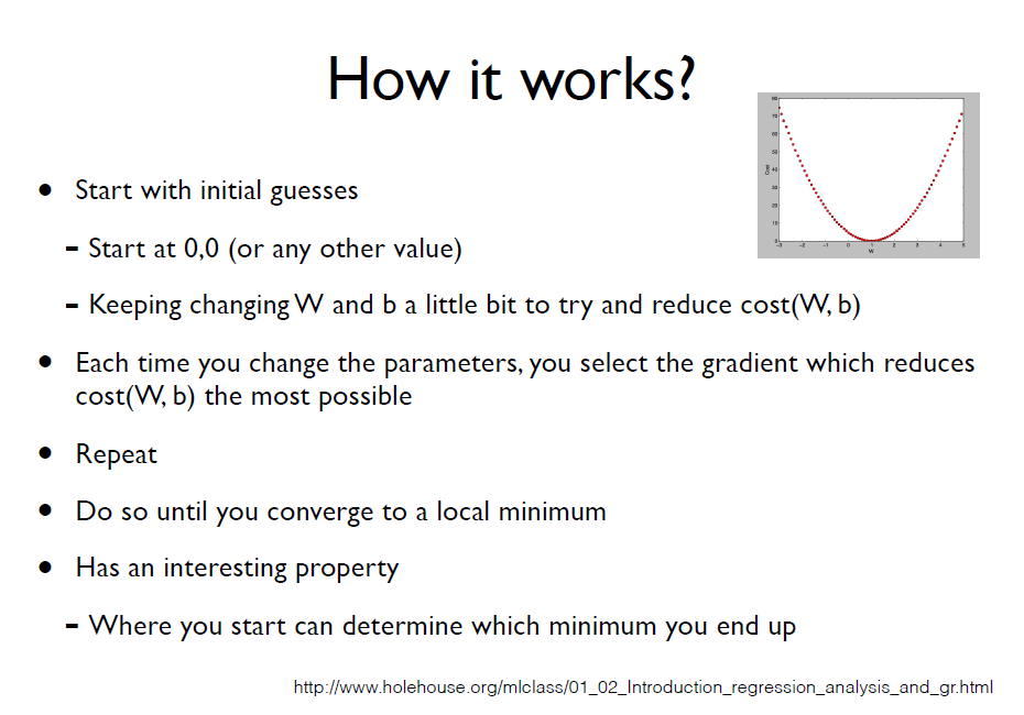 원리는 W를 조금 바꾸고 cost 함수를 줄이는 것이다.