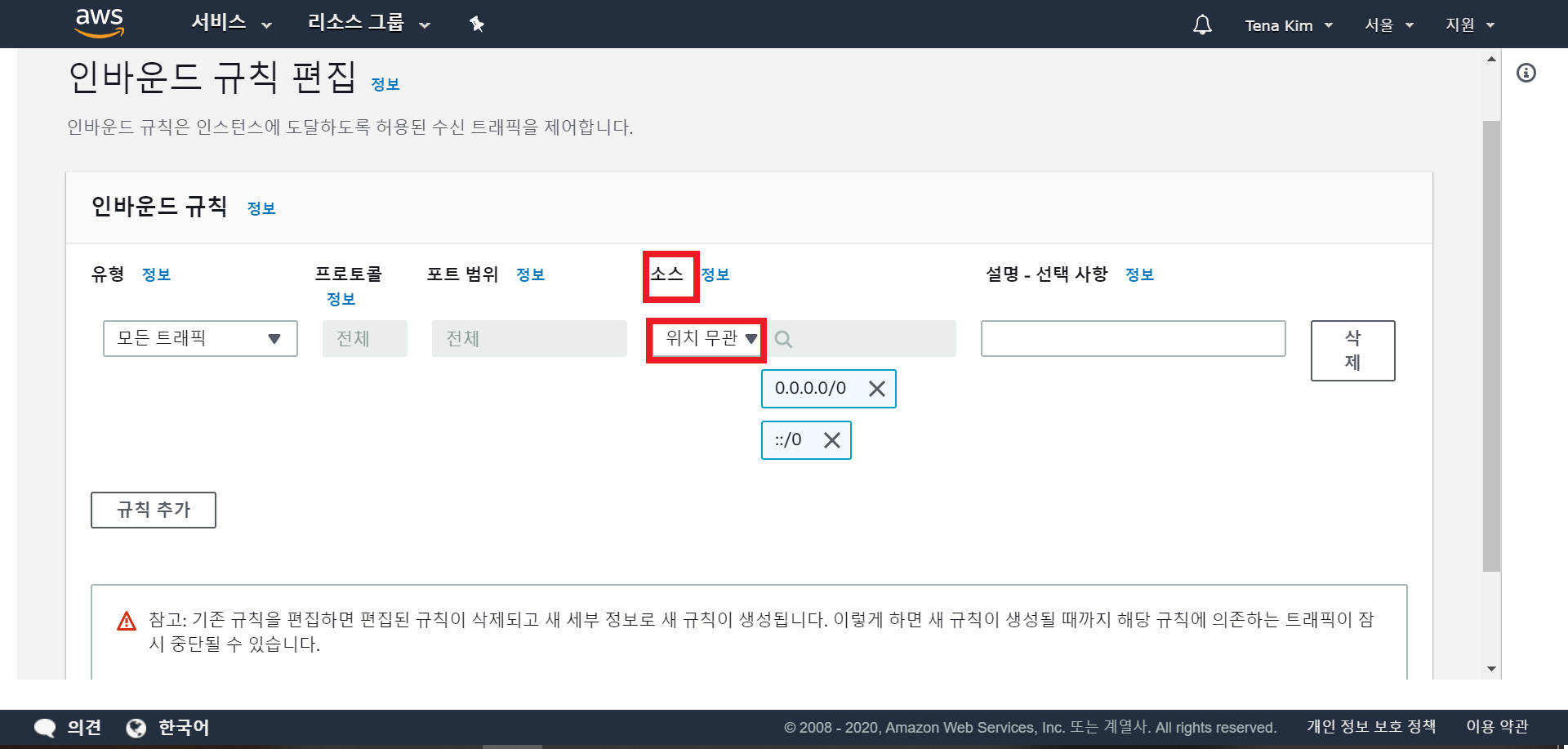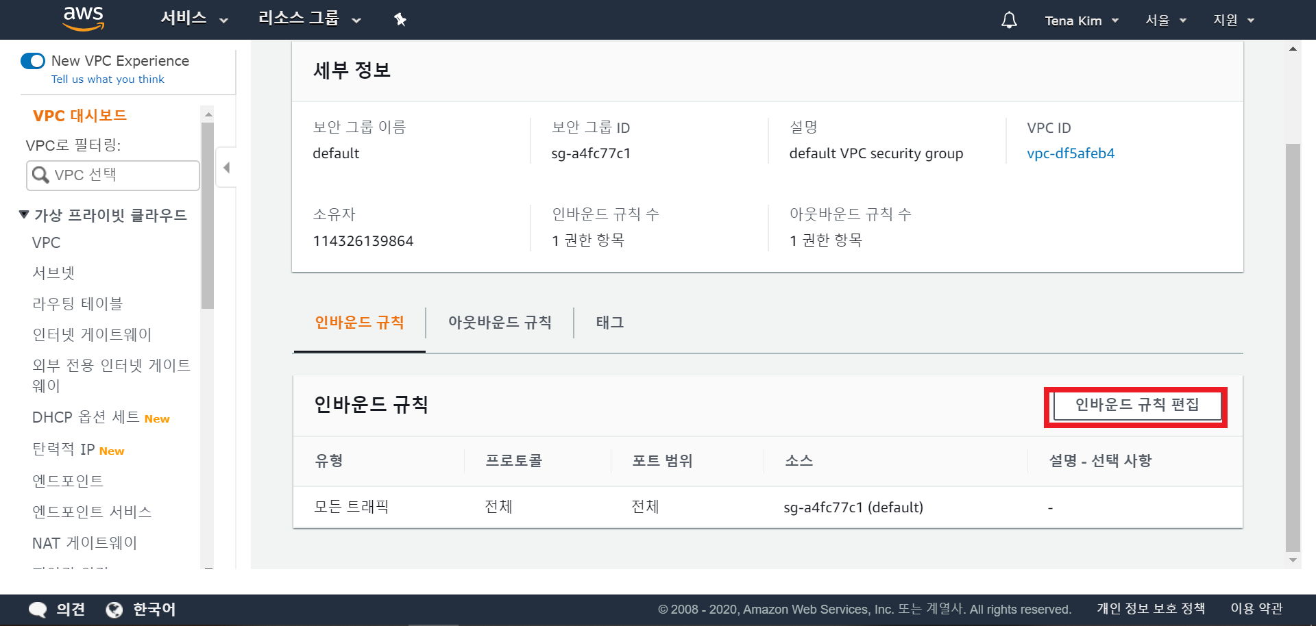 3. 하단의 인바운드 규칙 편집을 클릭한다.