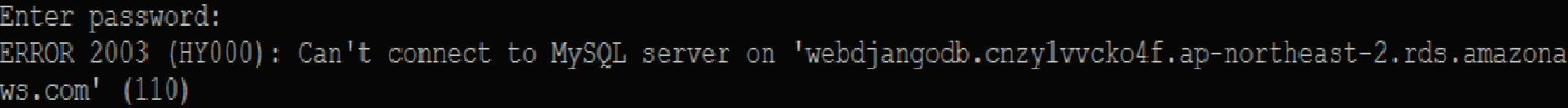 기본적으로 DB 인스턴스는 접근을 허용하지 않는다. 즉, 보안 그룹 규칙에 문제가 있을 가능성이 높다.