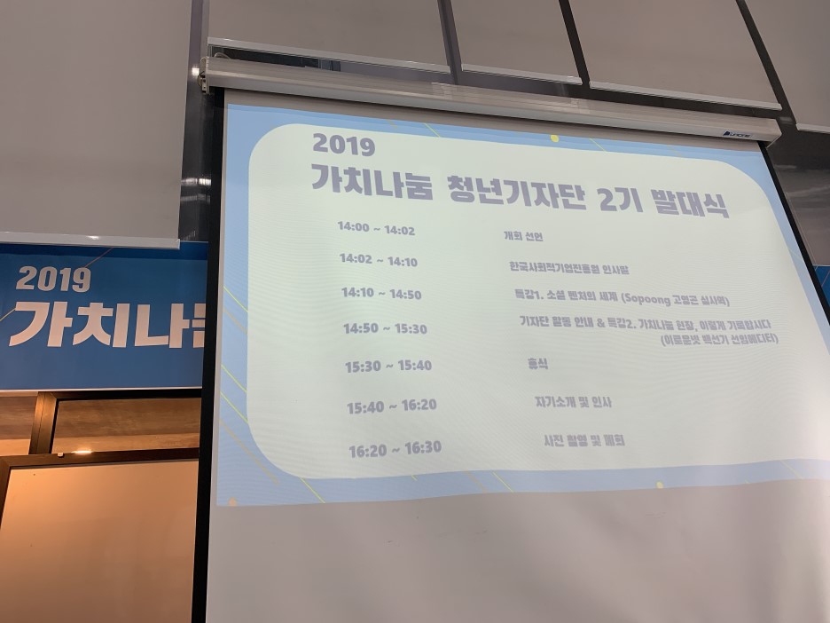 발대식에서는 축사와 활동안내가 있었고, 기사가 업로드 되는 이로운넷의 선임에디터분이 기사작성을 위한 도움을 주셨다.