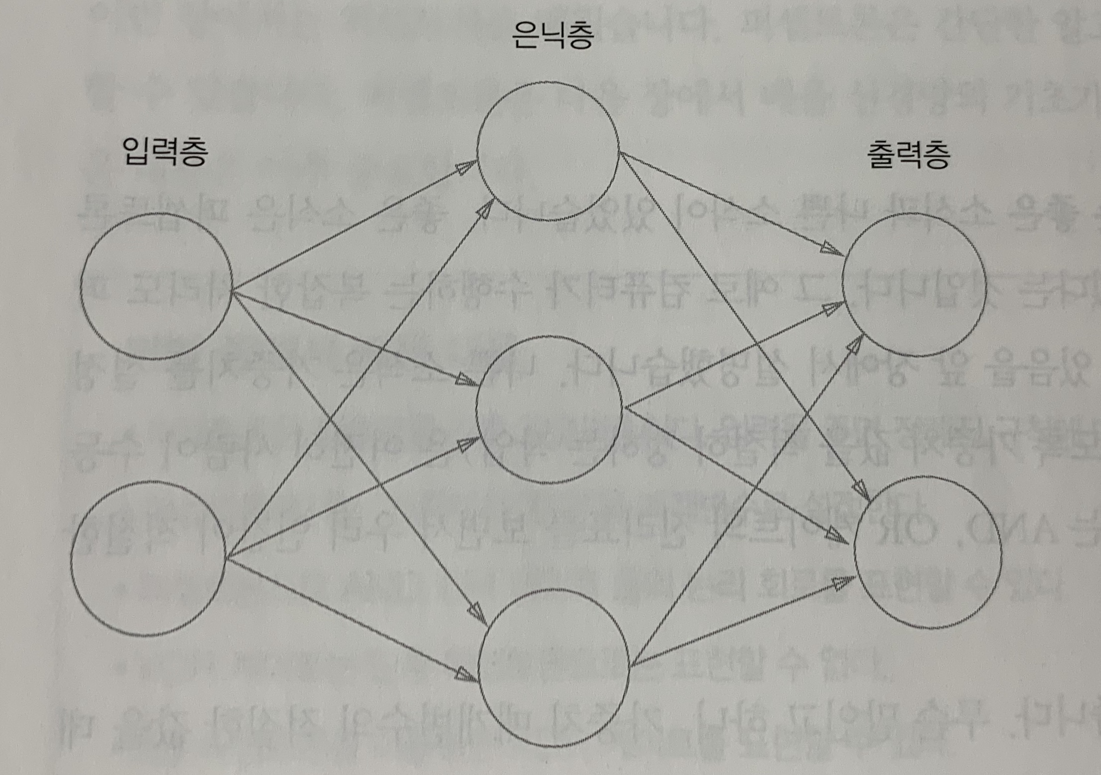 은닉층의 뉴런은 (입력층이나 출력층과 달리) 사람 눈에는 보이지 않는다. 그래서 '은닉'이다.