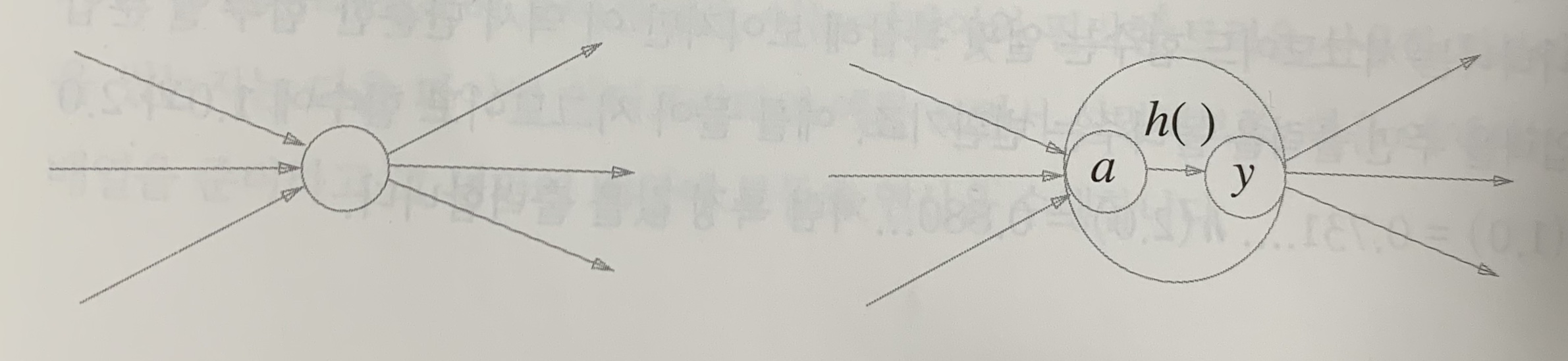 기존 뉴런의 원을 키우고, 그 안에 활성화 함수의 처리 과정을 명시적으로 그려 넣었다.
