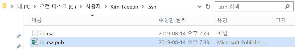 실제로 .ssh폴더에 가보니 id_rsa.pub라는 파일이 존재했다.